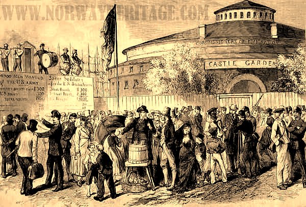 ![]() Castle Garden in 1870 from an original woodcut Courtesy of NorwayHeritage.com |