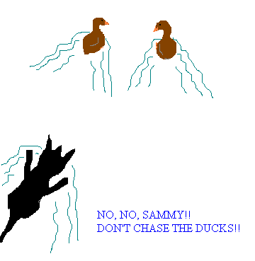 Sam, his brother, Simon, and his sister, Sheba, were taken to the Keweenaw Animal Alliance as very small puppies. They had been abandoned in an isolated area behind Zeba. From trembling little black fluff balls, they changed into softly furred, 4 month old characters. Sheba was soon adopted. Like human brothers, Sam and Simon played together. Sam would fight mock battles with his blanket. The less adventurous Simon would rush in to help him. (Gazette article: Saturday, 3/30/96) We hope Simon and Sheba were adopted into good homes. We adopted Sam on April 13, 1996, and he has stolen our hearts.