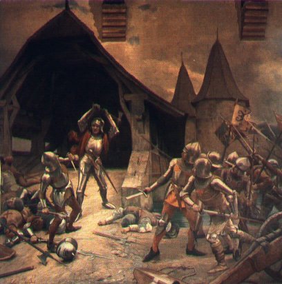 "Already a considerable number of Savoyards had gone to make their passage over the defenseless Bridge of Thielle, when Jacques Baillod, banneret* of Neuchatel, a very tall man, rushed alone toward the enemy. Armed for war, equipped with a battleaxe and protected by his shield, he threw himself on the enemy crying: "For the children of the canton!" Jacques Baillod victoriously defended the Bridge of Thielle against the Count of Romont, his battleaxe spreading terror in the ranks of the Savoyards and giving death to all it reached. After long resistance and superhuman efforts, our hero, like Horatius Cocles did on the Bridge of Sublicius at Rome, put to flight that mob of warriors who, all well armed, had rushed like madmen at this courageous Neuchatelois. On seeing this, the Count of Romont, a part of whose company had just attempted a large check at Anet, where the women were fighting heroically, turned on his heel, too weak, he said, to resist such men; he rejoined the main part of the army of the Duke of Bourgogne and went to be cut to pieces before Morat."