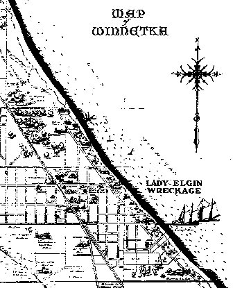 Archival Map of Winnetka Showing Lady Elgin Wreckage from Scanlan's Book