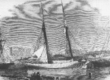 Woodcut of Schooner Augusta showing bow damage from the London Illustrated News