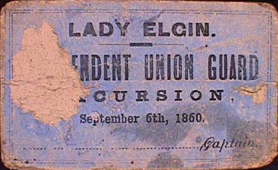 Lady Elgin Ticket for her last trip - Courtesy Harry Zych