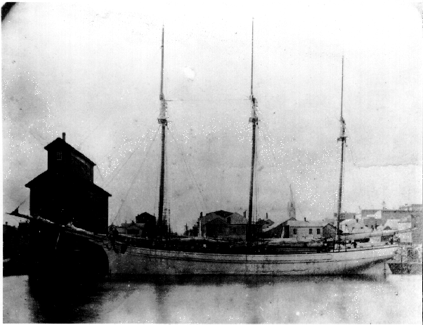 Photo of Lottie Cooper in Manitowoc River soon after launch in Mar 1876. Courtesy of City of Sheboygan Historian.