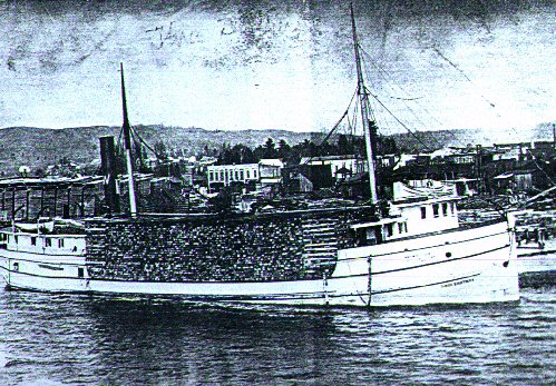 Her hull dimensions were 162.0 ft. x 31.4 ft. x 11.8 ft. Her gross tonnage was 583 and 444 net and she could hold 530,000 ft. of lumber. Her Steeple Comp. engine was built in 1888 by the Frontier Engine Works of Buffalo, New York with dimensions of 20 & 36 x 30 and could generate 280 horsepower at 96 revolutions. Her fire box boiler was built in 1888 by R. Davis at Milwaukee, Wisconsin with dimensions of 8d x 151 and generated 100 psi.